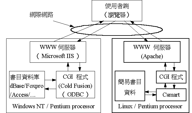 PC 等級的電腦,因此採用雙主機的配置,以提昇書目檢索的速度。